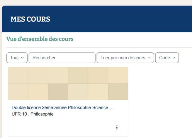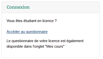 Le questionnaire qui vous a été attribué en fonction de votre inscription pour l'année universitaire apparait. Cliquez sur le nom de votre licence.